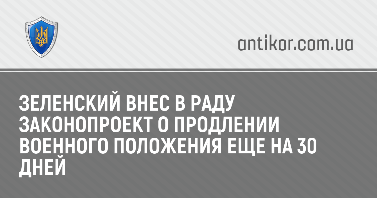 Зеленский внес в Раду законопроект о продлении военного положения еще на 30 дней