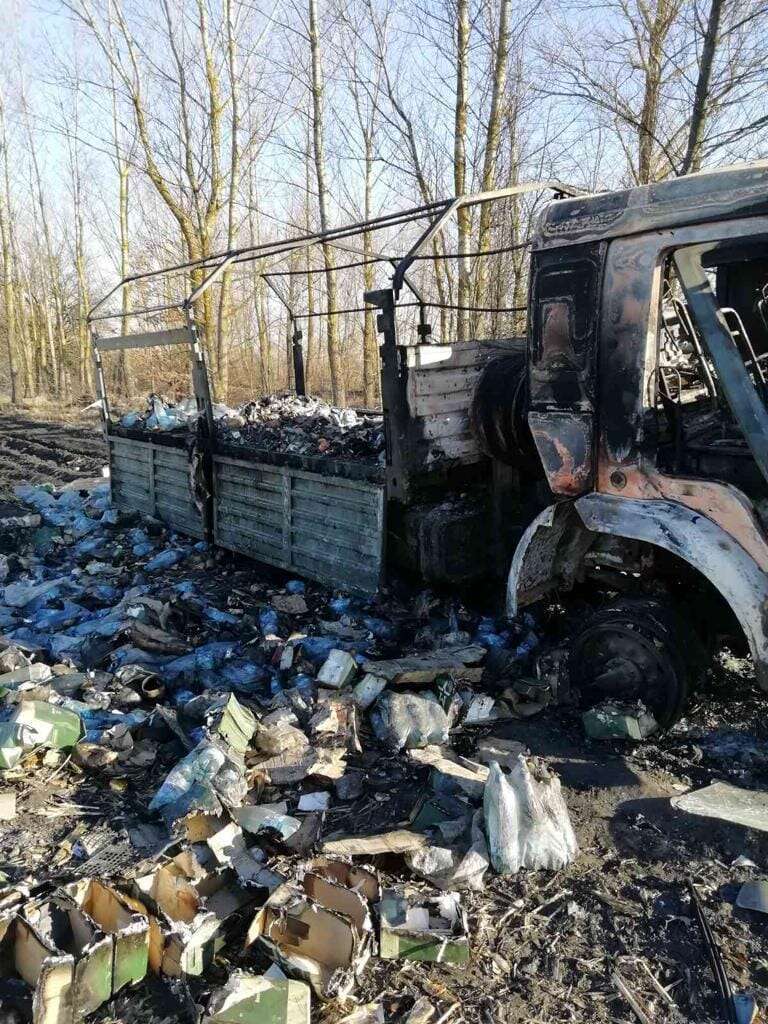 Українські сили спротиву знищили в Чернігівській області два автомобілі загарбників, які везли боєприпаси та харчі.