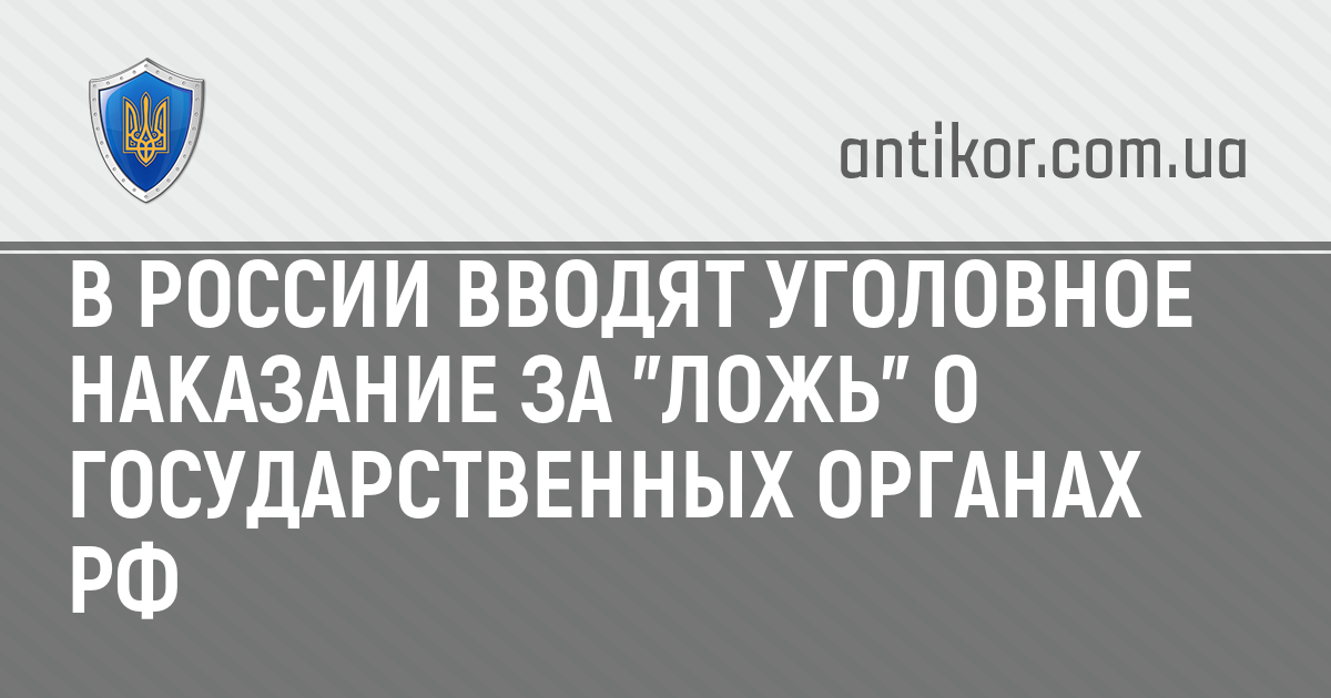 Ответственность за "ложь" о государственных органах РФ предусматривает лишение свободы на срок до трех лет или штраф до 1,5 млн рублей (более 423 тыс. грн).
