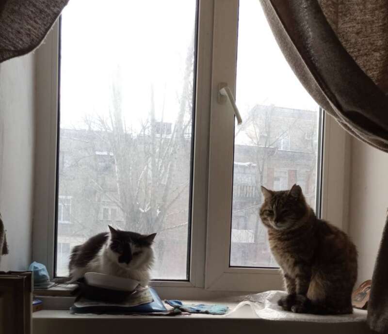 По місту стріляли так, що я була переконана: жодних автобусів не буде. Але одна не змогла довести це чотирьом… Зрештою з котами, з абияк у спішці зібраними речами ми, як у дурному сні, йшли під обстрілами понівеченим містом до виконкому. Там нам і десяткам таких як ми повідомили, що автобусів не буде, бо перед тим такі саме автобуси, які їхали з Сєвєроднецька, обстріляли…
