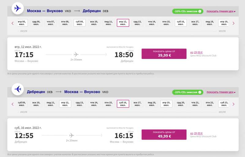 Венгерский лоукостер WizzAir возобновил продажу билеты из России. Согласно сайту, уже доступны авиабилеты на июнь и на октябрь из Москвы по нескольким направлениям.