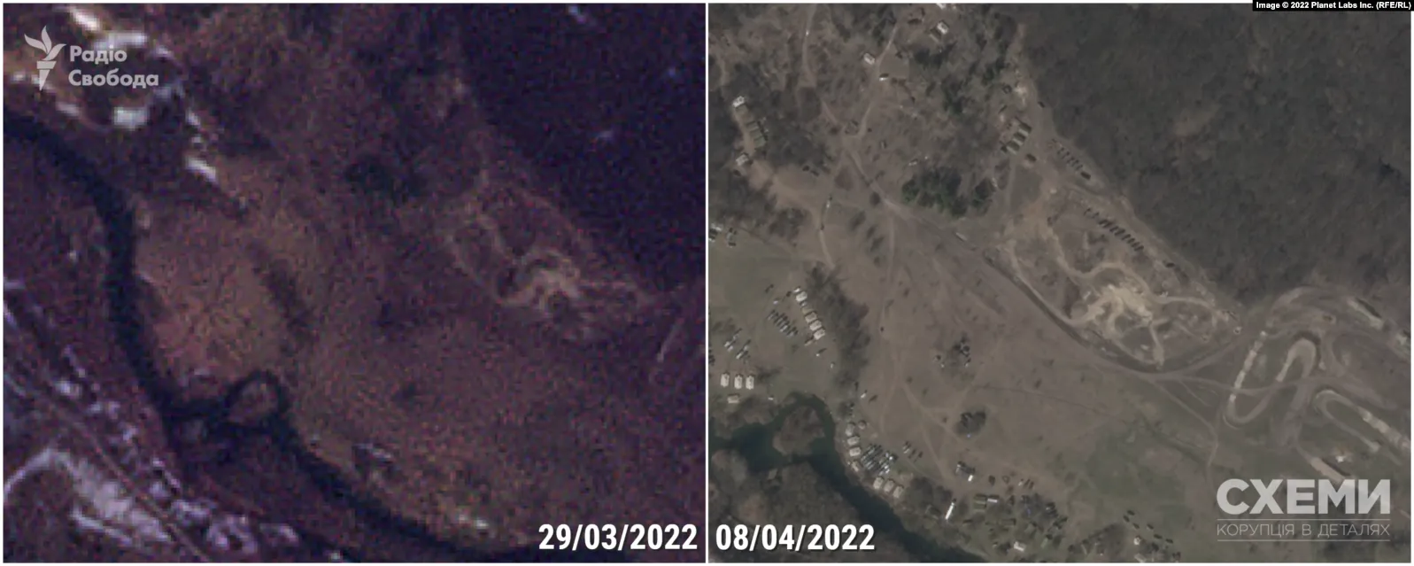 На спутниковых снимках видно массовое скопление военной техники, в том числе танков и бронетранспортеров, и развертывание палаточного городка. Об этом сообщает издание "Схемы" .