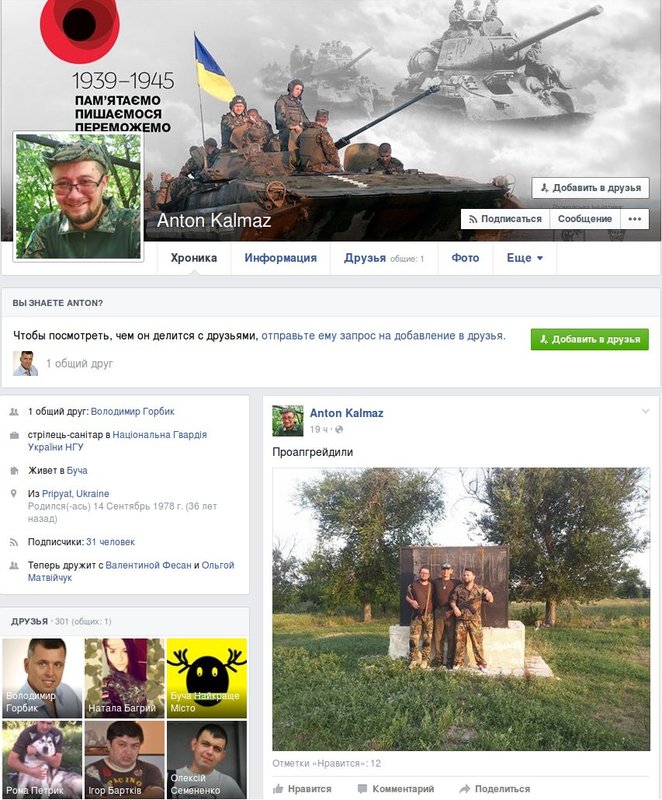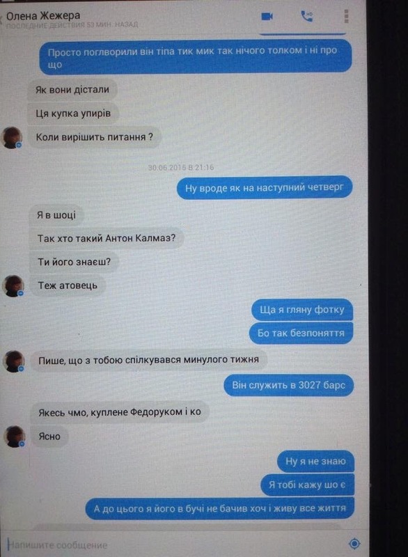 Однак лише нахабним використанням імені військового Жежера не обмежилася. Як видно з її повідомлень, вона легко дозволяє собі поливати брудом ім’я іншого військового, Антона Калмаза, та ім’я волонтера Анатолія Кушнірчука, добре відоме бійцям на Сході України та всім українським волонтерам.