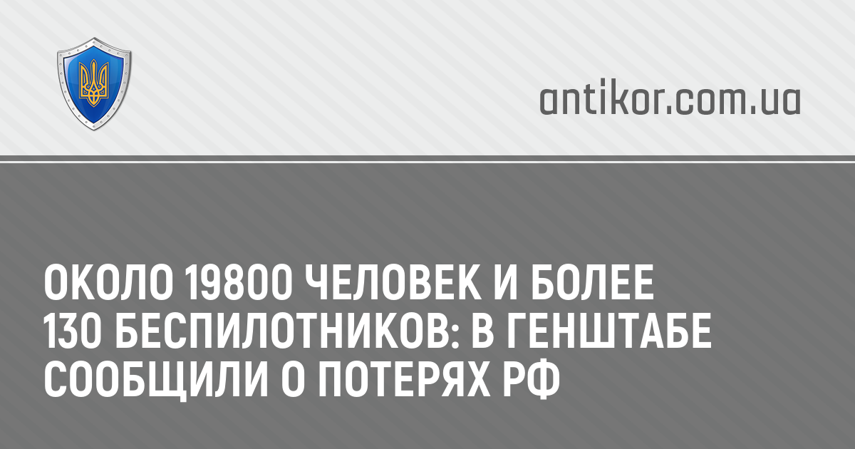 С начала полномасштабного вторжения в Украину потери российских оккупационных войск составили около 19 800 человек личного состава. При этом были уничтожены более 130 вражеских беспилотников.