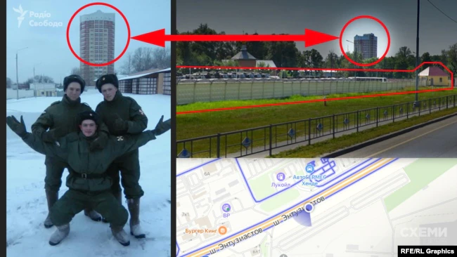 У Забрусова также есть фотографии, которые можно геолоцировать как снятые в Балашихе, на территории штаба дивизии.
