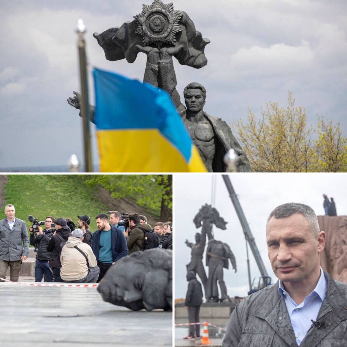 А в Киеве переименуют Арку дружбы народов и подсветят ее в цветах украинского флага. 26 апреля коммунальщики начали демонтаж бронзовой скульптуры двух рабочих, установленных под аркой, возведенной в столице в 1982 году «на ознаменование воссоединения Украины с россией». Демонтаж планируют завершить к вечеру, сообщил мэр Киева Виталий Кличко.