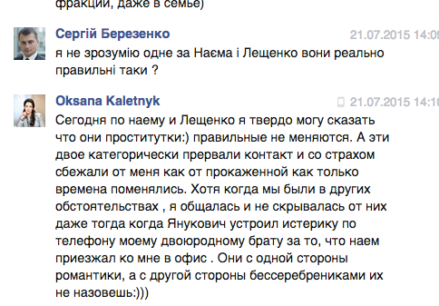 А в беседе с бывшим депутатом ВР коммунисткой Оксаной Калетник последняя проливает свет на свое общение с Сергеем Лещенко.