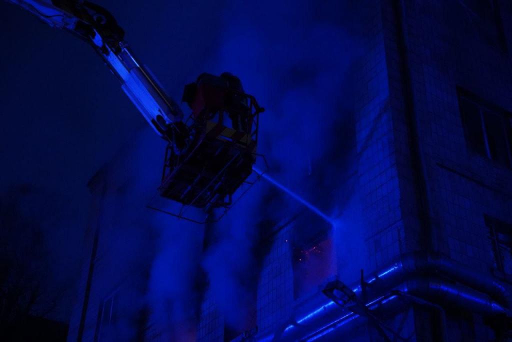 Спасатели ликвидировали пожар. Пострадал 25-этажный жилой дом: частично разрушены 1 и 2 этажи. В 21:25 пожар ликвидирован на общей площади 100 кв. м.