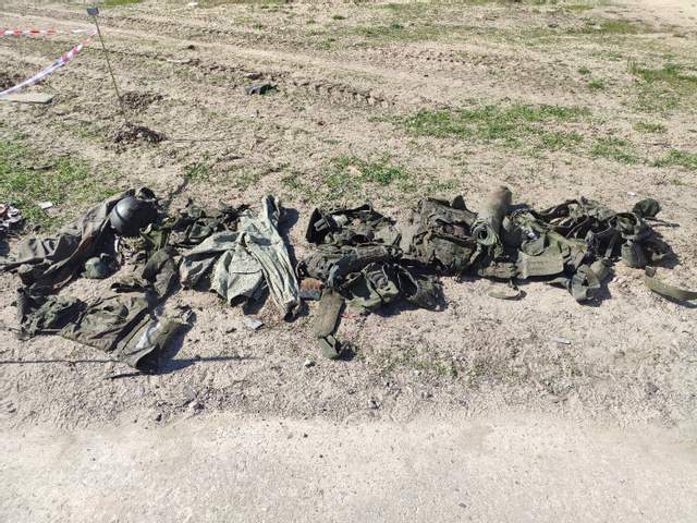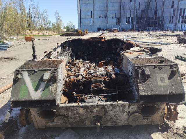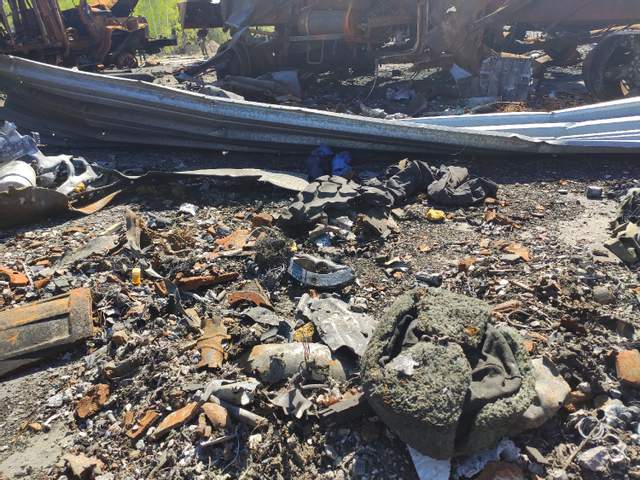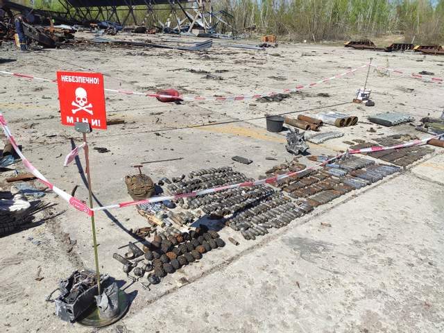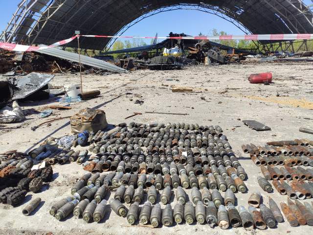 Ангар с уничтоженной "Мрией". Недалеко саперы складывают разминированные боеприпасы / Фото 24 канала