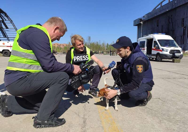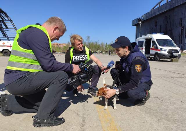 Среди участников разминирования был любимец украинцев – пес Патрон. Во время передышки он даже успевал позировать для ТВ.