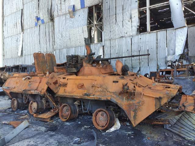 Уже больше месяца после завершения боевых действий, а в воздухе все еще стоит запах гари. В аэропорту много сгоревшей военной техники, которую впоследствии будут утилизировать, как это было сделано раньше с живой силой.