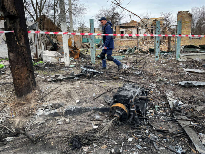 Эксгумация тел из братской могилы возле церкви святого апостола Андрея Первозванного. 13 апреля 2022 Фото: Татьяна Козак, Ґрати