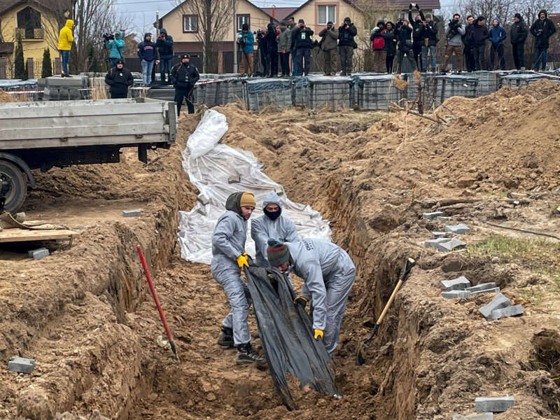 Эксгумацию в Буче посетил Карим Хан, прокурор Международного уголовного суда, который в марте дал старт расследованию ситуации в Украине. Возле церкви Хан сделал заявление о том, что Украина теперь — место преступления. И что у него есть «разумные основания полагать», что преступления, которые совершаются здесь, попадают под юрисдикцию его суда.