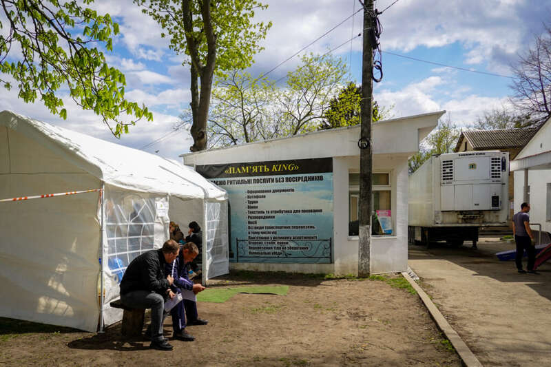 Морг в Буче, 29 апреля 2022 года. Фото: Татьяна Козак, Ґрати