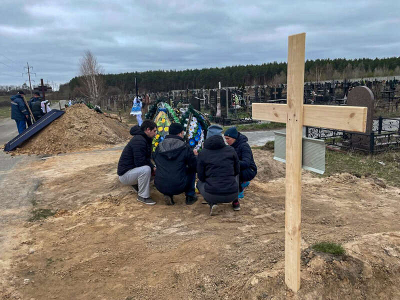 Поминки Дмитрия Стефиенко на кладбище на улице Депутатской в Буче, 13 апреля 2022 года. Фото: Татьяна Козак, Ґрати