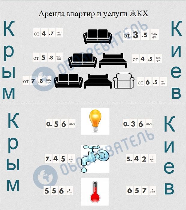 За основу возьмем официальные данные статистических ведомств. Согласно данным Крымстата на апрель 2015 года средняя заработная плата в Крыму составила 21016 рублей. По текущему курсу НБУ (0,39 рублей за 1 гривну) это 8196 гривен. Не такая уж маленькая сумма для нынешних украинских реалий, не правда ли? Однако с учетом того, что в статистике указана так называемая "грязная" зарплата, без вычета налогов, сумму нельзя назвать заоблачной для украинского города.