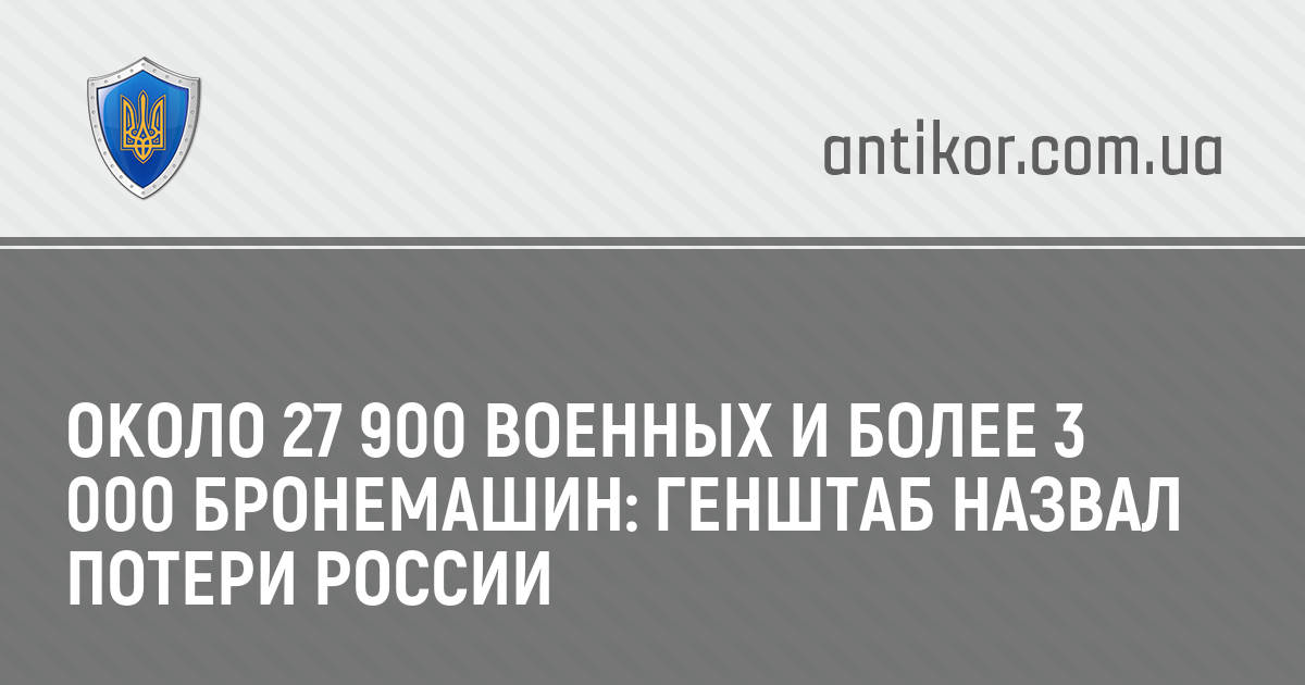 С начала вторжения в Украину российская армия потеряла около 27 900 военнослужащих убитыми. Также уничтожено более 3 000 бронемашин.