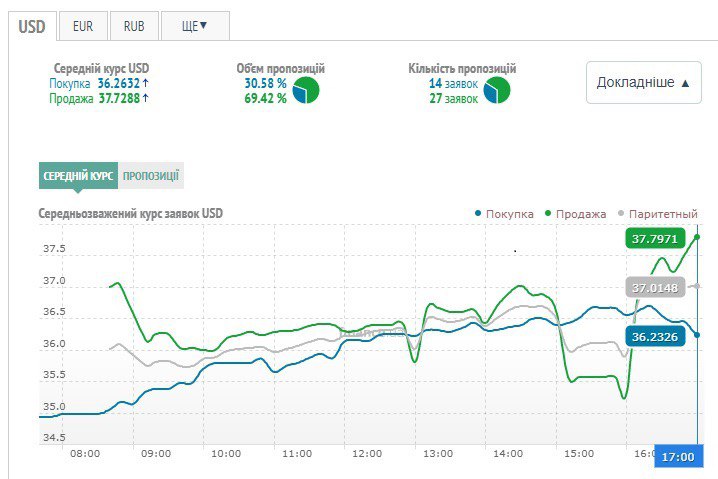 Это средние цены финансовых компаний, которые можно увидеть по городу. Иногда можно встретить и совсем высокие курсы — до 39 грн/$, но это единичные случаи.