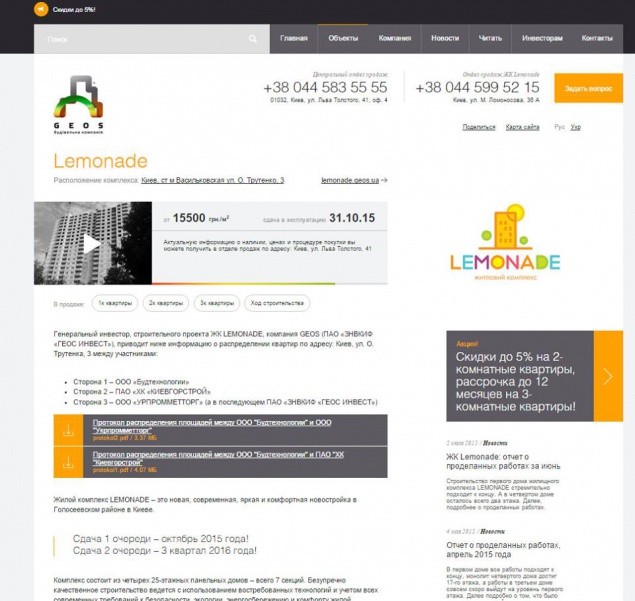 Ну, а жилье, которое строится на скандальном участке, активно продается на сайте “Строительной компании Геос”, а кредиты на его приобретение дает все тот же “Кредекс”.