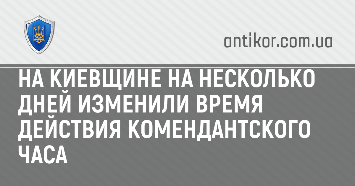 В Киевской области изменят время комендантского часа. С 29 мая по 5 июня он ежедневно будет действовать с 23:00 до 5:00.