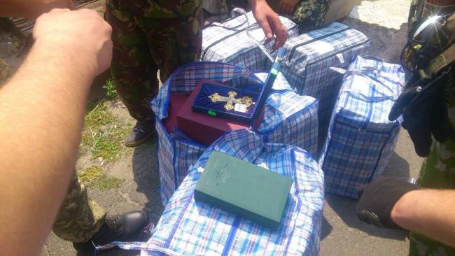 «Сегодня на переезде у станицы Луганской правоохранители осмотрели тепловоз, который вез партию угля на одну из ТЭС. При осмотре в одном из отсеков были обнаружены пять хозяйственных сумок с золотыми крестами, серьгами, кольцами, серебряной посудой и изделиями церковно-религиозного назначения. Машинист признался, что вез это все на одну из железнодорожных станций возле города Счастье, где его уже ждали», - сообщил он.