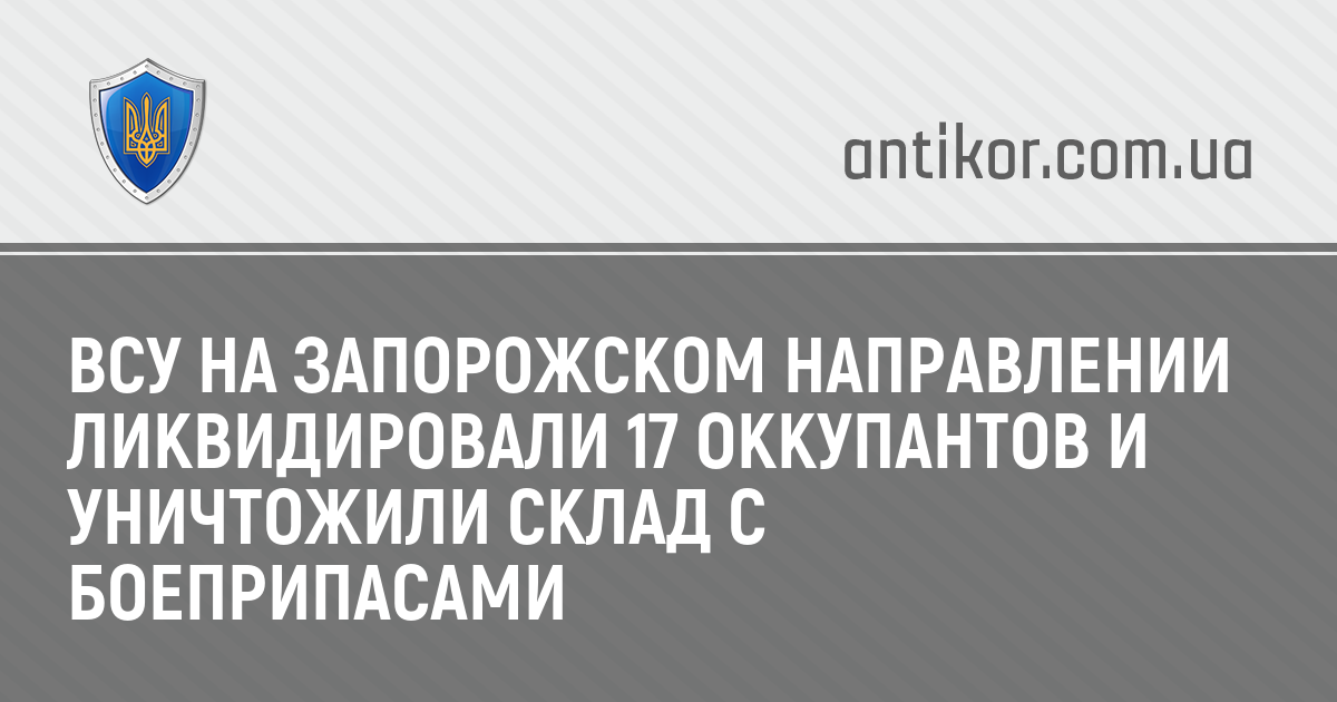 ВСУ на Запорожском направлении ликвидировали 17 оккупантов и уничтожили склад с боеприпасами