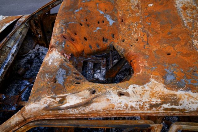 Корреспонденты Би-би-си посетили пять различных мест в жилых кварталах Харькова, подвергшихся обстрелам, и увидели симметричные следы взрывов: характерные признаки поражения поверхности, которые возникают при применении кассетных боеприпасов. Мы показали снимки этих мест трем экспертам по вооружениям, и все они согласились с тем, что они соответствуют следам от кассетных боеприпасов.
