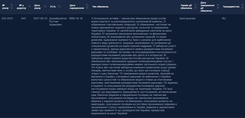 Як відомо, в травні 2021 року під №642 Джамбулатов був внесений до переліку кримінальних авторитетів РНБО, але з невірною датою народження - його молодшого брата Руслана. На тлі скандалу, який здійнявся навколо помилок у санкційному списку, в подальшому їх виправили. А на додачу старшого з синів Адама Джамбулатова - позбавили українського громадянства.
