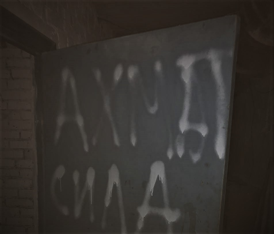 Вхід у школу закритий плівкою — дверей немає. Натомість у підвал вхід вільний. Тут по кілька днів тримали людей із зав’язаними очима, руками та ногами, сюди ж російська армія зносила вкрадене.