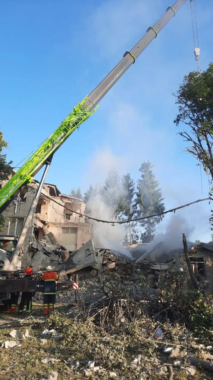 К счастью, в здании никого не было, так что обошлось без жертв, но спасатели принялись разбирать завалы. Об этом сообщил мэр города Олег Синегубов в Telegram, публикуя фото с места преступления РФ.