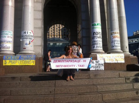 Разом з тим у центрі Києва мешканці Маріуполя влаштували безстрокову акцію протесту проти відводу озброєння і особового складу ЗСУ з Широкино, повідомляють Новости Донбасса