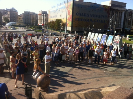 Активісти, що зібралися у центрі міста на площі Свободи, виступають проти створення 30-кілометрової буферної зони, оскільки на їх думку, це загрожує безпеці міста.