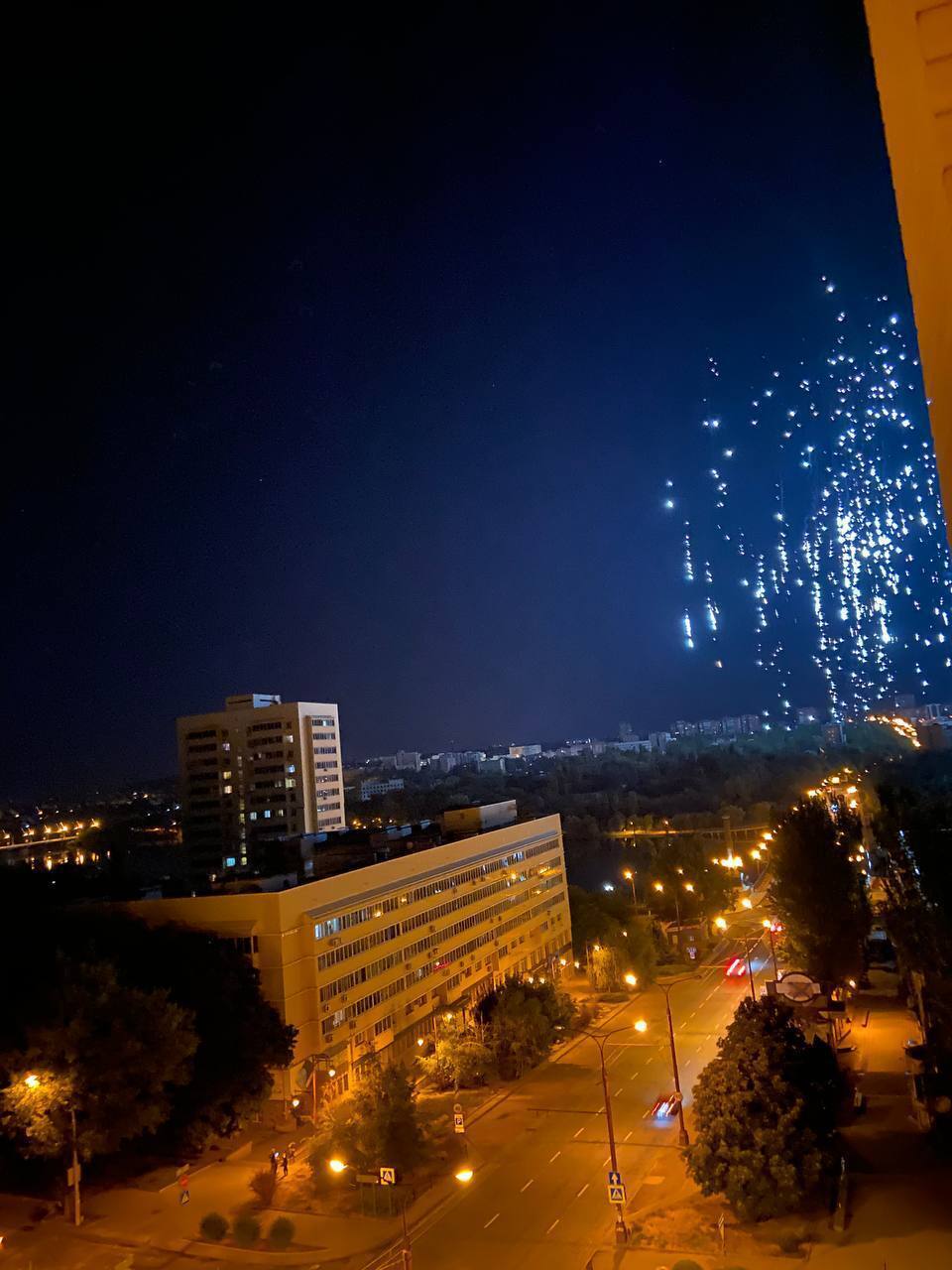 Російські військові запустили у небо над тимчасово окупованим Донецьком освітлювальні боєприпаси. Місцеві жителі сприйняли їх за запалювальні снаряди.