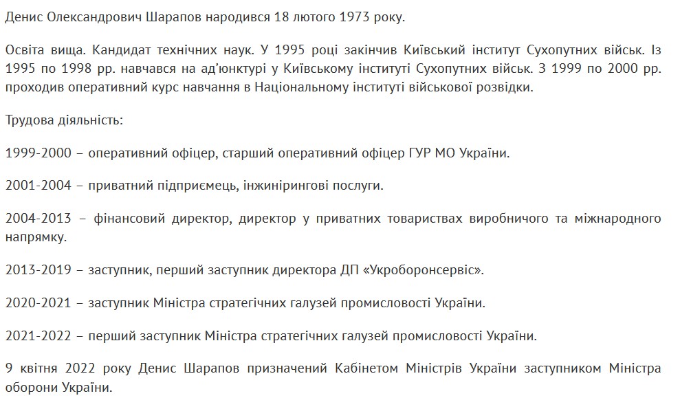 Шарапова призначили заступником міністра оборони 9 квітня, через кілька днів після остаточного відходу російських військ з півночі України. Після того при Міноборони почали кувати нового збройного монополіста.