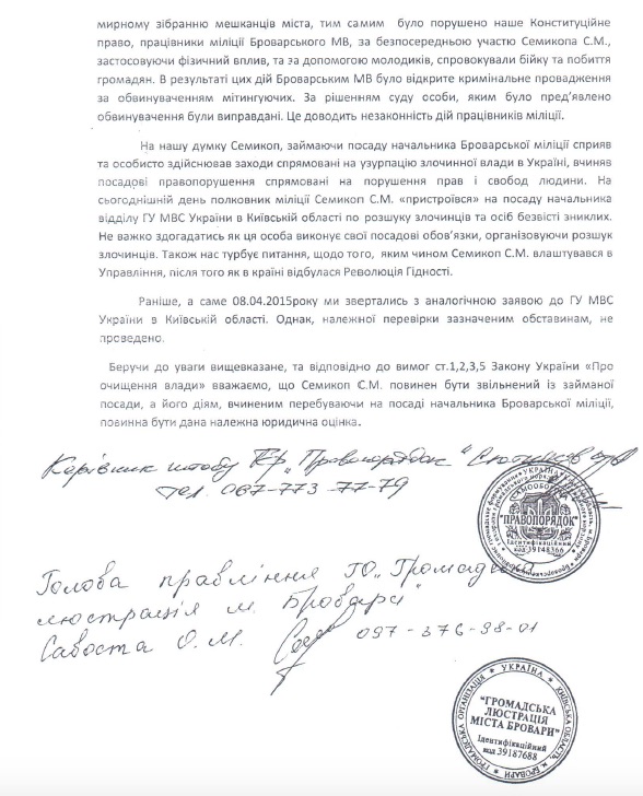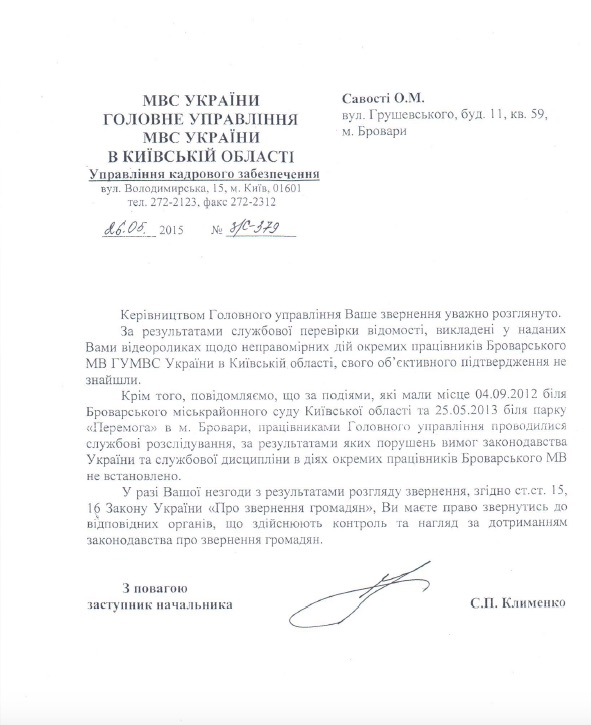 Вместо этого, благоразумно покинув Бровары по просьбе представителей самооброны сразу же после бегства завгара, он осел в ГУМВД в Киевской области. Узнав об этом, представители общественности начали беспокоиться и обращаться в различные инстанции,