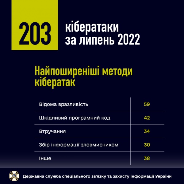 Усього було нараховано 203 кібератаки.