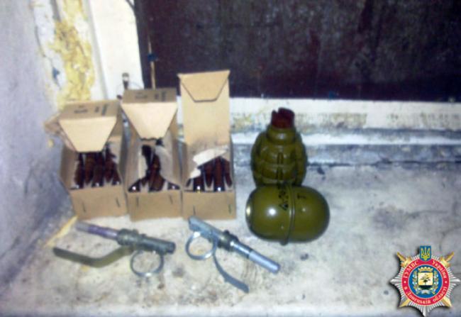 Получив постановление суда, представители Славянского горотдела милиции совместно с сотрудниками СБУ провели обыск в доме подозреваемого. При осмотре ванной комнаты за трубами был обнаружен пакет, в котором находились гранаты Ф-1 и РГД, два запала, а также 60 патронов калибра 7,62 мм.