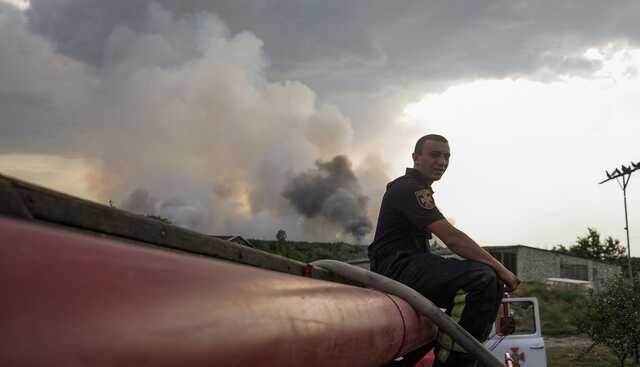 Людей не видно, спека накочується все сильніше. Влада знімає пожежний шолом. Трохи далі лунають глухі звуки вибухів.