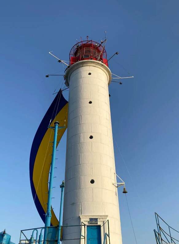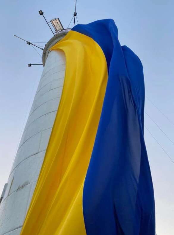 Як повідомили журналістам у прес-службі Одеської обласної військової адміністрації, на маяку розгорнуто жовто-блакитний стяг – найбільший прапор Одещини.