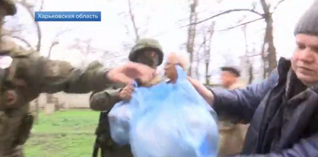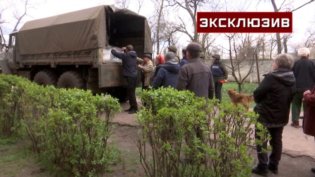 Кадри з російського сюжету про роздачу гуманітарної допомоги в Балаклії