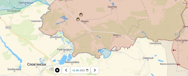 Згідно з картою, біля Лимана Донецької області, порівняно зі вчорашнім днем, розширилася "сіра зона". Ще вчора вказана територія була під контролем росіян. Бої за місто тривають.
