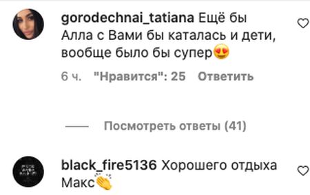 «Вау, як класно»; «Таланлива людина талановита у всьому!»; «Розумник. Все встигаєте»; «Класна швидкість»; «Гарного відпочинку»; «Ще Алла з вами каталася б і діти, взагалі було б супер», — відреагували передплатники артиста.