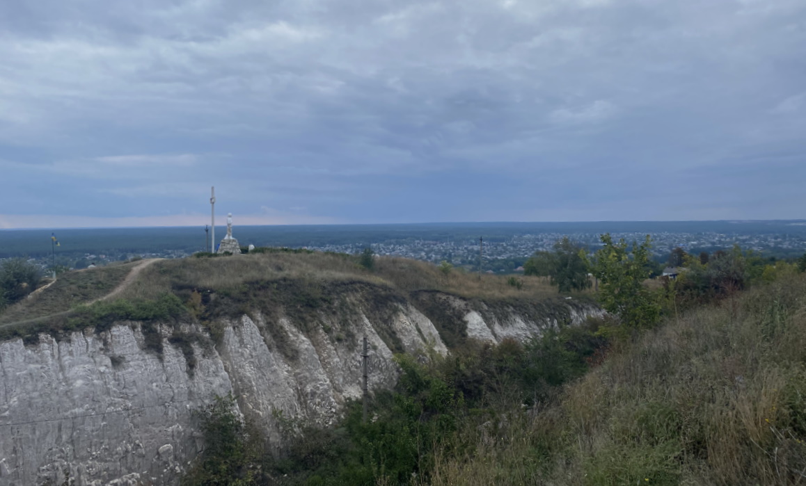 Під’їжджаємо до гори Кременець – найвищої точки цього району з крейдяними відкладами, телевежею та монументом на честь загиблих у Другій світовій війні. На Кременці – постійне скупчення людей: це єдине місце в Ізюмі, де ловить мобільний зв’язок.