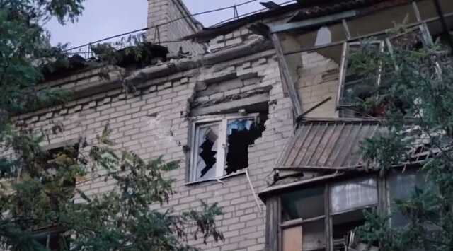 Друга ракета завдала значно більшої шкоди: внаслідок прямого влучення зруйновано стіну в одній із квартир п’ятиповерхівки, 4 особи отримали поранення.
