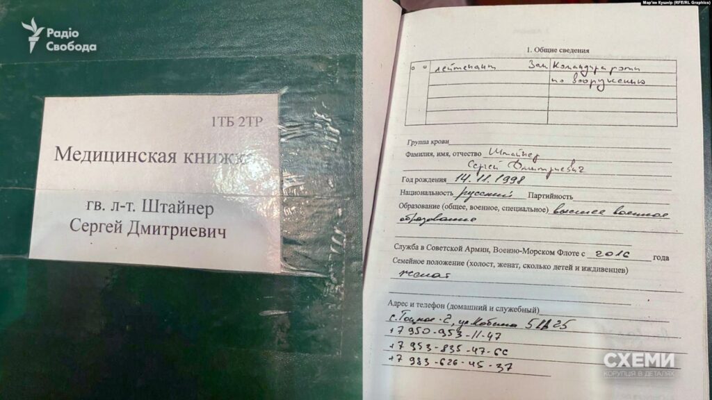 В медичній книжці було детально розписано, кому вона належить — Штайнеру Сергію Дмитровичу. Був вказаний вік, його посада і звання — лейтенант, заступник командира роти з озброєння. Також вказана військова частина, місце народження, місце дислокації військової частини. Що одружений, також вказані його контактні номери телефонів. Був ще один документ — про матеріальні цінності, тобто це те, що він безпосередньо перевозив у танку щодо озброєння, яке російські військові, вочевидь, отримали, щоб воювати в Україні, — пояснила свідок.