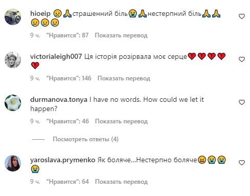 "Нестерпний біль", "Ця історія розірвала моє серце", "Як боляче", "Це жах", "Боже, бідна тварина", "Як він плакав", "Біль і лють", – йдеться у повідомленнях.
