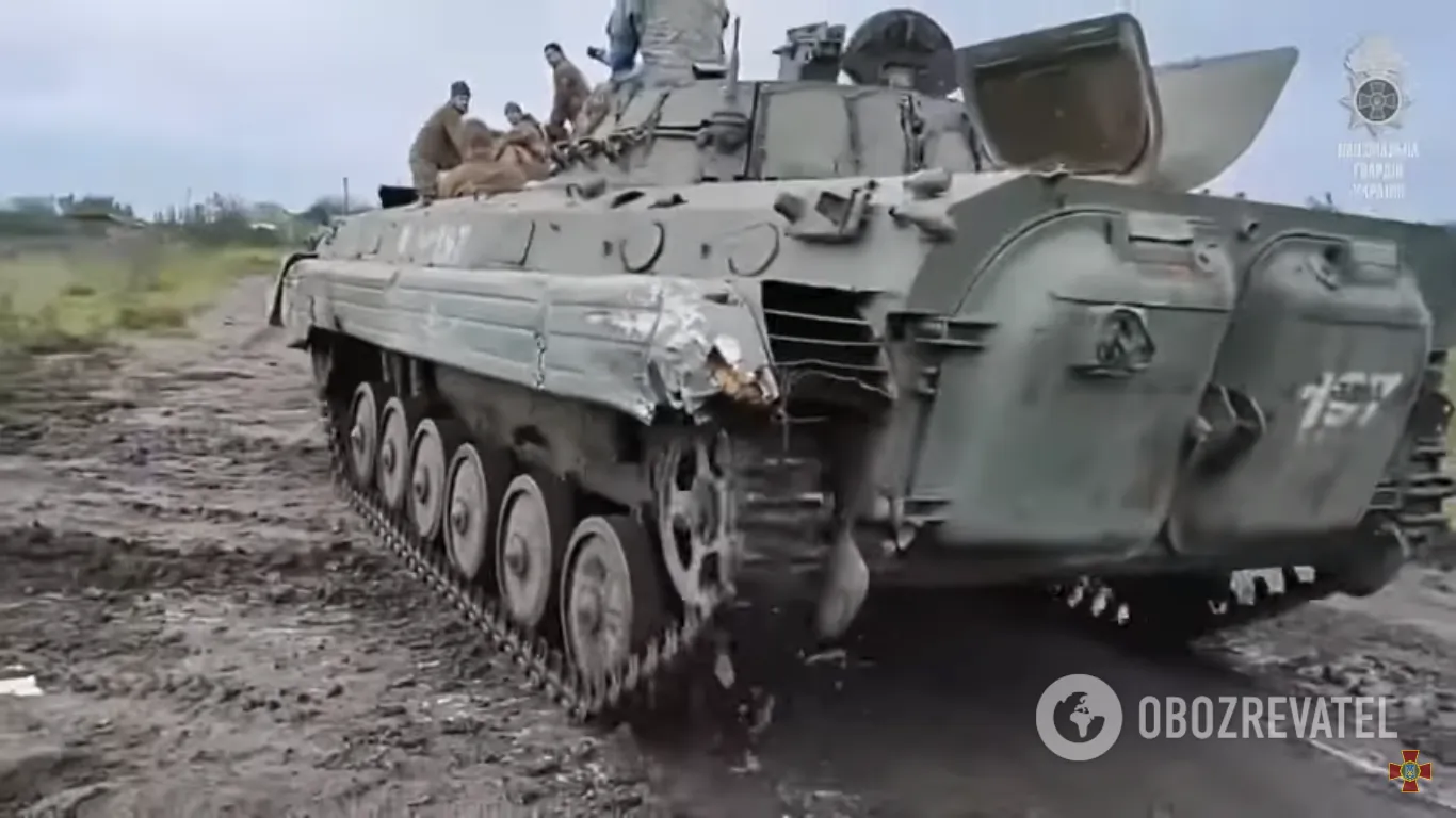 Бійці Національної гвардії України захопили російську БМП. Очевидно, окупанти залишили пошкоджену бронемашину, коли втікали від українського контрнаступу.