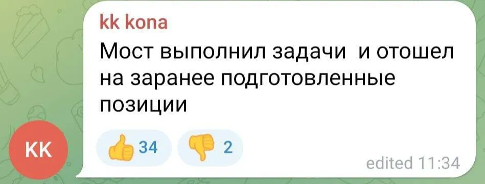 "Міст виконав всі завдання та відійшов на заздалегідь підготовлені позиції" - іронічно згадують виправдання міністерства оборони росії після поразки на Харківщині.