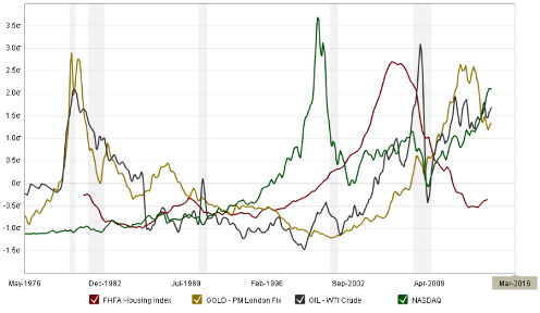 График, показывающий пузыри на рынках недвижимости, золота, нефти и высокотехнологичных компаний США, www.macrotrends.net