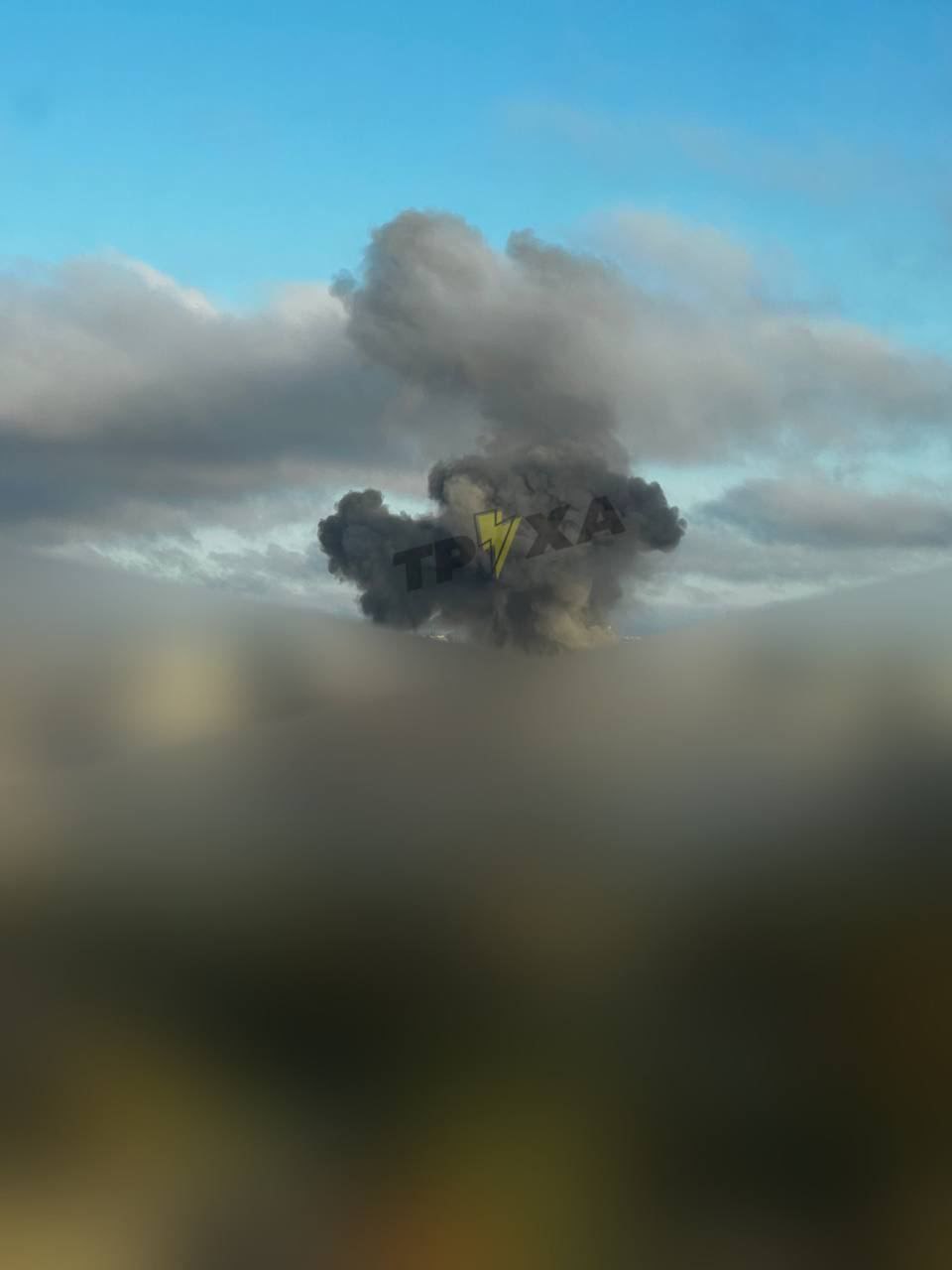 У телеграм-каналах публікують фото з димом, який піднімається, ймовірно, на місці прильоту в Києві.